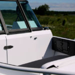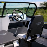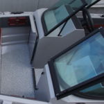 Das Boot mit einem vollständig geöffneten Cockpit, das durch zwei Konsolen unterteilt ist.