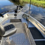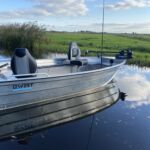 Wenn Sie sich für ein luxuriöses Raubfischboot aus Aluminium entscheiden möchten, sollten Sie sich das RF450 nicht entgehen lassen. Mit seinem hohen Freibord fühlt sich das Boot auch auf großen Gewässern wohl. Sollte doch einmal Rohr-/Regenwasser in die Wanne eindringen, sorgen die 4 verschweißten Staukästen dafür, dass Ihre Ausrüstung trocken bleibt. Das Layout wurde in Zusammenarbeit mit Fischern entwickelt. Die beiden langen Rutentabletts auf beiden Seiten sind sehr bequem und bieten auch die Möglichkeit, Angelgeräte darauf zu legen. Die Stoßstange ist mit einer Schiene ausgestattet, so dass Sie leicht (entfernt) Rutenhalter mit einem Railblaza Tracloader positionieren können, E.v.t. Sitzbeinpositionen können zusammen mit unserem Händler bestimmt werden. Am Bug ist eine Platte angeschweißt, auf der ein Frontmotor angebracht werden kann, und die Batterie kann im vorderen Staufach befestigt werden. Die Konstruktion ist vollständig geschweißt, was sie robust und stabil macht. Sie halten also ein Boot in den Händen, das einiges aushalten kann. Das Boot ist auch kursstabil und behält dank seiner Breite stets seine Stabilität. Die Außenhaut besteht aus 3 Millimeter starkem Aluminium und der geschweißte Boden sorgt dafür, dass das Boot im Notfall immer schwimmt. Der 4 mm starke Riffelblechboden ist außerdem mit zwei Abflussstopfen versehen. Damit kann das Regenwasser während der Stillstandszeit abgeleitet werden. Dadurch ist das Boot praktisch wartungsfrei.